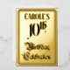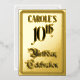 The front of this ornate tenth birthday party/celebration foil invitation design features the message “10th Birthday Celebration” in elegant script-style text. It also has an editable name. The back features personalised details about the event, such as the date, time, venue/location, and any other useful information. Elegant, fancy, customisable invitations like these might be used to invite guests to a birthday celebration/party being held to honour somebody’s tenth birthday. [~Z0000596]