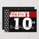 This modern red, white and black design is a fun way to invite folks to a 10th birthday celebration. All text is totally customisable. You can experiment with different paper types by clicking on the "Invitation Options" tab on the upper right hand corner. I recommend the ice hued metallic paper which gives your birthday invitation a festive shimmer and shine. Trendy!