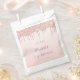 A favour bag for a girly and glamourous 10th birthday party. A faux rose gold ombre, gradient background with an elegant faux rose gold glitter drips, paint drip look. The text: Tempate for a name written in dark rose gold with a modern hand lettered style script. Templates for a date and age 10.