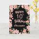 10th Birthday Pink Peach Watercolor Floral Black Card