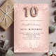 A modern, stylish and glamourous invitation for a girl's 10th birthday party. A faux rose gold background with drips, paint drip look. The name is written with a modern dark rose gold coloured hand lettered style script. Personalise and add your party details. Number 10 is written with a balloon style font, script.