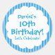 10th Birthday Sticker Blue Stripes V1C This pretty striped sticker adds a lovely touch to your birthday invitations and birthday party favours.  So cute!  Personalise with the birthday girl's or boy's name!