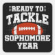 This fun sophomore year design is perfect for a high school sophomore football player or 10th grade teacher that loves to support their high school football team! Perfect for back to school, 9th grade graduation or all school year long! Features 'Ready To Tackle Sophomore Year' high school sophomore quote w/ football graphic. Great for a 10th grader or tenth grade teacher that loves to watch or play football!