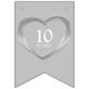 Tin wedding 10 years of marriage anniversary flag bunting banner. A great additional to a ten year wedding anniversary party celebration, customise with your own three photos of the happy couple. Reads tin wedding 10 years. Matches other tin wedding anniversary heart partyware and invitations. Original art and design by Sarah Trett www.sarahtrett.com for www.mylittleeden.com
