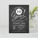 Rustic 10th anniversary party Invitation with black chalkboard pattern and white script font. Cheers to 10 years! Perfect for an elegant celebration.