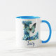 A personalised coffee mug in shades of Blue with coordinating butterfly, featuring the letter "L" monogram. Easily customise it with your name or create a unique gift for your loved ones. Enough room to add an additional quote or message or even a background. This mug also come in different styles and colour combinations. Browse the collection to see examples of this font type on the different cup styles and sizes.
