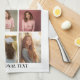 11 Photo Collage - Custom Text - Black and White Tea Towel