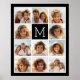 11 Photo Instagram Collage Custom Black Monogram Poster