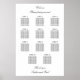 11 Table Elegant Minimalist Seating Chart, please personalise the names of the couple and the names of the guests along with any of the other text that you may wish to personalise. An elegant seating chart featuring stylish black text in a clean minimalistic layout on a white background.