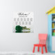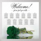 This elegant wedding seating chart has 11 tables, each with 10 seats, accommodating a total of 110 guests. The design exudes romance, sophistication, and beauty, showcasing a single deep emerald green coloured rose lying on its side, reflecting in a water pool. The title of the chart, "Welcome! Please Find Your Table," is written in fancy script calligraphy, leaving ample space for the couple's names and wedding date at the bottom. This seating chart serves as a perfect welcoming gesture for your wedding reception and assists guests in locating their designated seats with ease.