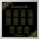 This 11 table seating chart is both simple and elegant with gold text on a black background. The design features a lacy script calligraphy title with decorative frilly faux foil filigree in the corners. Stylish, chic and sophisticated way to help your guests find their seats at your wedding reception. It includes table assignments for 110 guests with 10 seats per table.