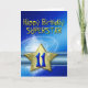 A big shiny gold star in which you can put the name of the birthday boy. The background is blue with lovely white swirls.