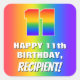 11th Birthday: Colourful, Fun Rainbow Pattern # 11 Square Sticker