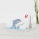 Cute dolphin jumping out of splashing water with red balloon for 11th birthday.