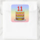 11th Birthday: Fun Cake and Candles + Custom Name Square Sticker