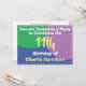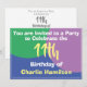 invitation for a special birthday party with name, and number of years. Party invitation for an 11 year old. Add your own details. 11th birthday party invitations.