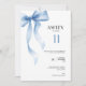 Make your teenager's special day even more memorable with our 11th birthday invitation featuring a beautiful blue bow design. This elegant and classy invitation is an editable template that you can personalise easily, making it perfect for a 11-year-old girl’s celebration party. With its minimalist style and charming watercolor coquette element, this invitation is not only visually appealing but also practical, allowing you to send a stylish blue ribbon invite with just a few clicks. Choose our printable card to ensure that every detail stands out as you invite friends and family to join in the festivities. Celebrate her journey into teenage years with a stunning invite.