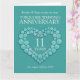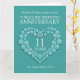 Customised turquoise wedding anniversary card. Personalise this anniversary card with your relationship or couple's names, year of marriage, and inside words. The example reads Brother and sister-in-law on your turquoise Wedding Anniversary 11 years. Other matching items are available. Turquoise heart graphic art and design by Sarah Trett for www.mylittleeden.com