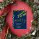 FRONT DESIGN: A modern, minimal design with a huge "merry" in a trendy script. The Christmas message can be changed. A family signature is included with an area to add individual names. The background color is a navy blue. --------