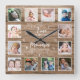 12 Photo Collage Time Memories Quote Rustic Wood Square Wall Clock