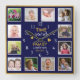 12 Photo Collage Time With Family Quote Blue Gold Square Wall Clock