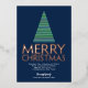 FRONT DESIGN: A modern Christmas Tree with a Watercolor background and ornaments. The greeting - Merry Christmas - is a large foil imprint. A message area is also included with an area to add a family signature and individual names. The background color is navy blue. --------