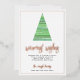 FRONT DESIGN: A modern, minimal Christmas Tree with a Watercolor background and ornaments. The greeting - Warmest Wishes - can be changed. A message area is also included with an area to add a family signature and individual names. The background color is white. --------