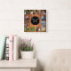 12 Picture Family Photo ✨ Faux Cherry Wood Square Wall Clock