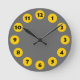 A stylish clock face with the numbers placed inside circular color spots in each hour position. Also available in other colors.