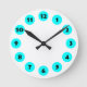 A stylish clock face with the numbers placed inside circular colour spots in each hour position. Also available in other colours.
