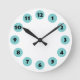 12 Spots - Black with Lt Blue Green on White Round Clock