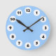 A stylish clock face with the numbers placed inside circular colour spots in each hour position. Also available in other colours.
