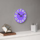 A stylish clock face with the numbers placed inside circular color spots in each hour position. Also available in other colors.