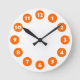 A stylish clock face with the numbers placed inside circular colour spots in each hour position. Also available in other colours.