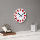 A stylish clock face with the numbers placed inside circular color spots in each hour position. Also available in other colors.