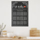 12 Tables Wedding Seating Chart Poster Templates - Elegant Script and White Floral Frame on Grunge Black Chalkboard Background.