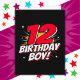 This cool 12th birthday boy design is perfect for a superhero birthday party theme! Great for any 12 year old boy that loves comic book superheroes or villains with superpowers! Features 12th birthday '12 Birthday Boy!' happy birthday quote in a comic book superhero theme that the 12 year old super birthday boy will LOVE!