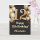 12th Birthday Black and Gold Balloons Confetti Card. For further customisation, please click the "Customise it" button and use our design tool to modify this template.