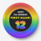 12th Birthday: Colourful Rainbow # 12, Custom Name Paper Plate