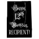 This fancy and ornate birthday giftbag design features the message “Happy 12th Birthday,” in elaborate script style text, on a black coloured background. It also has a customisable recipient name. A birthday themed gift bag like this might be a respectable way to wrap a gift or present being given to celebrate somebody’s 12th birthday. [~Z0000557]