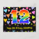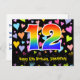12th Birthday: Fun Hearts Pattern, Rainbow 12 Postcard