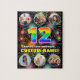 This cheerful and joyful birthday themed jigsaw puzzle design features the number “12“ with a multicolored rainbow spectrum inspired gradient pattern, along with the message “HAPPY 12th BIRTHDAY,” and a custom name, on a pattern inspired by bursting multicolored celebratory fireworks. The images near the top and bottom can be customised. perhaps with photos of the recipient, and/or the recipient’s family and friends. A bold, customisable birthday jigsaw puzzle like this might be a fun way to send birthday greetings to somebody who is celebrating their twelfth birthday. (Photography © Storytree Studios, Stanford, CA.) [~Z0000664]