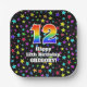12th Birthday: Fun Stars Pattern and Rainbow “12” Paper Plate