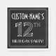 This luxurious 1920s/1930s era inspired art deco style birthday-themed paper napkin design features a personalised name, and the message “12TH BIRTHDAY PARTY!”. The number “12TH” has a fancy geometric lined styling. Paper napkins like these might be used at a birthday party held in celebration of somebody’s twelfth birthday, or some other 12th event. [~Z0000659]