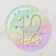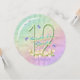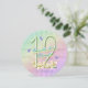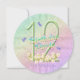 A rainbow of colours, pink flowers and lavender butterflies featured on girls 12th Birthday party round shaped invitation. Name on front and all information on back of the invitation may be personalised using the template provided.