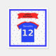 Personalise these party napkins with the birthday boy or girl's name: just type in the box. This design features a red and blue sports tee on a starry background, with a red happy birthday banner.