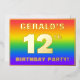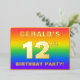 The front of this eye-catching and vibrant twelfth birthday celebration foil invitation card design features a customisable name, a large number “12th”, the message “BIRTHDAY PARTY!”, and a border. The background of the front has a joyful, multicolored, rainbow spectrum inspired gradient pattern. The back features personalised details about the event, such as the date, time, venue/location, and any other relevant information. Customisable invitations like these might be a fun way to invite attendees/guests to a birthday party being held to celebrate somebody’s 12th birthday. [~Z0000599]