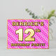 The front of this upbeat and fun twelfth birthday party foil invitation card design features an editable name, a large number “12th”, the message “BIRTHDAY PARTY!”, and a border. The background of the front features a loving pattern with light pink and dark pink stripes and heart shapes. The back features personalised details about the event, such as the date, time, location, and any other relevant information. Personalised invitations like these might be a fun way to invite guests to a birthday party/gathering being held in celebration of somebody’s 12th birthday. [~Z0000603]