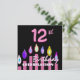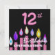 12th Girl Birthday Party Pink Striped Candles W685 Invitation