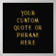 This real gold foil poster art features a text template in modern typography that easily allows you to add your own custom phrase, quote, saying, text, birthday wish, proverb, Bible verse, motivational quote, inspirational quote, funny quotes for kids, mum, dad, grandpa, grandma, boss, colleague, coworker, nurse, graduate, teacher and more. Use your imagination today!